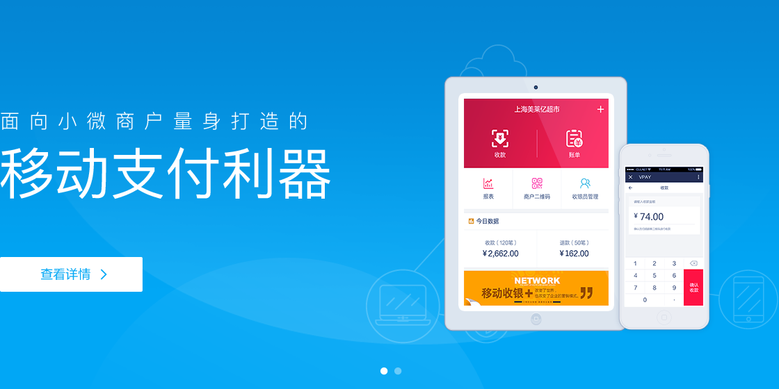线上、线下场景全覆盖。支持收款、付款、商户账户等业务